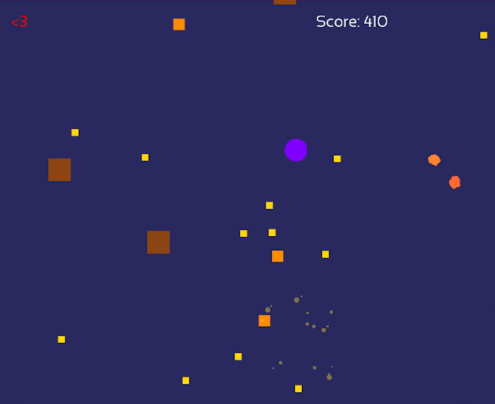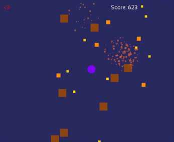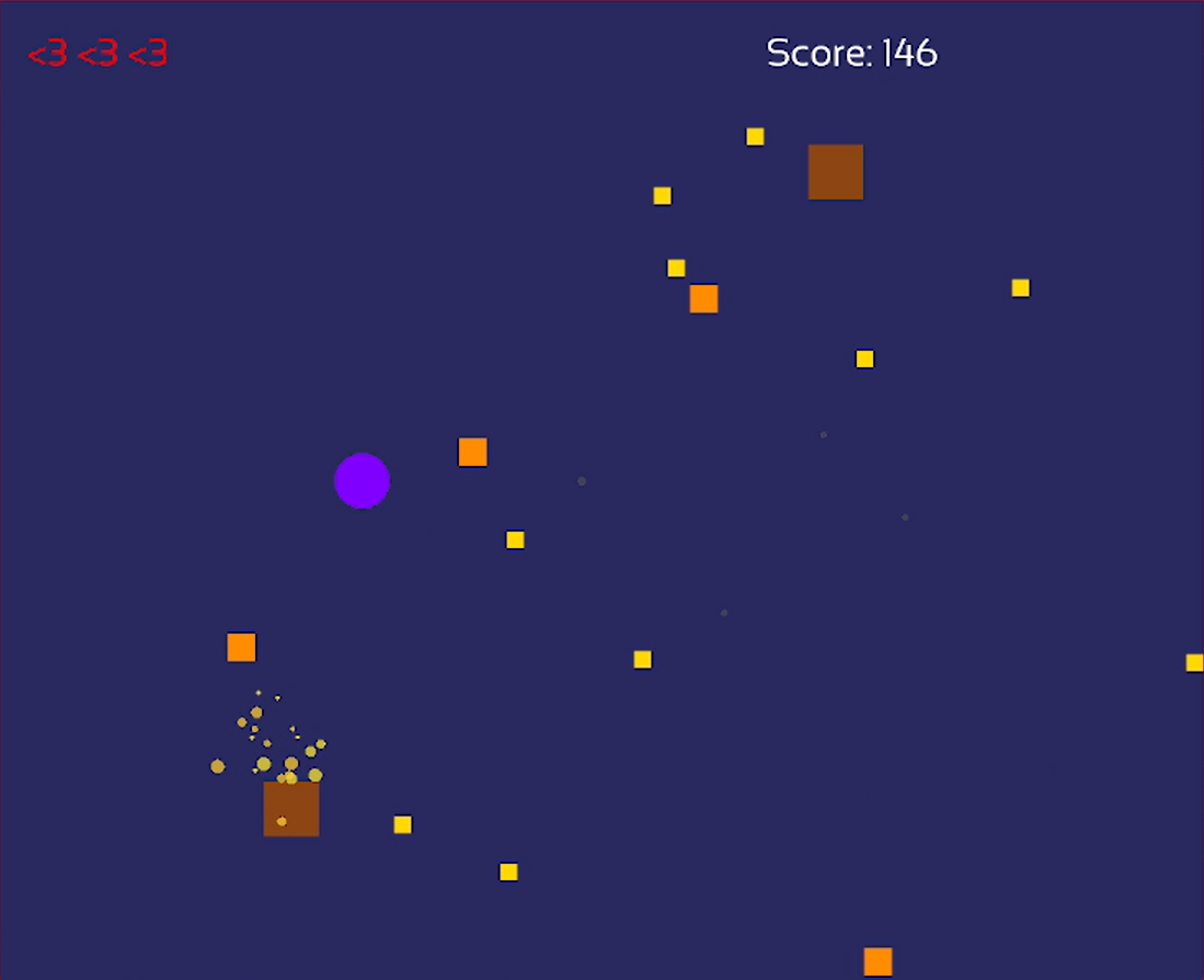Each collision between shapes creates satisfying particle explosions that fill the screen with motion and color. But be careful — if one of them hits you, you’ll lose a life. You only have three chances, so every move matters.